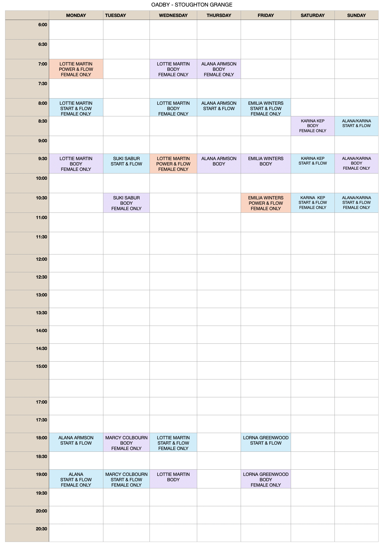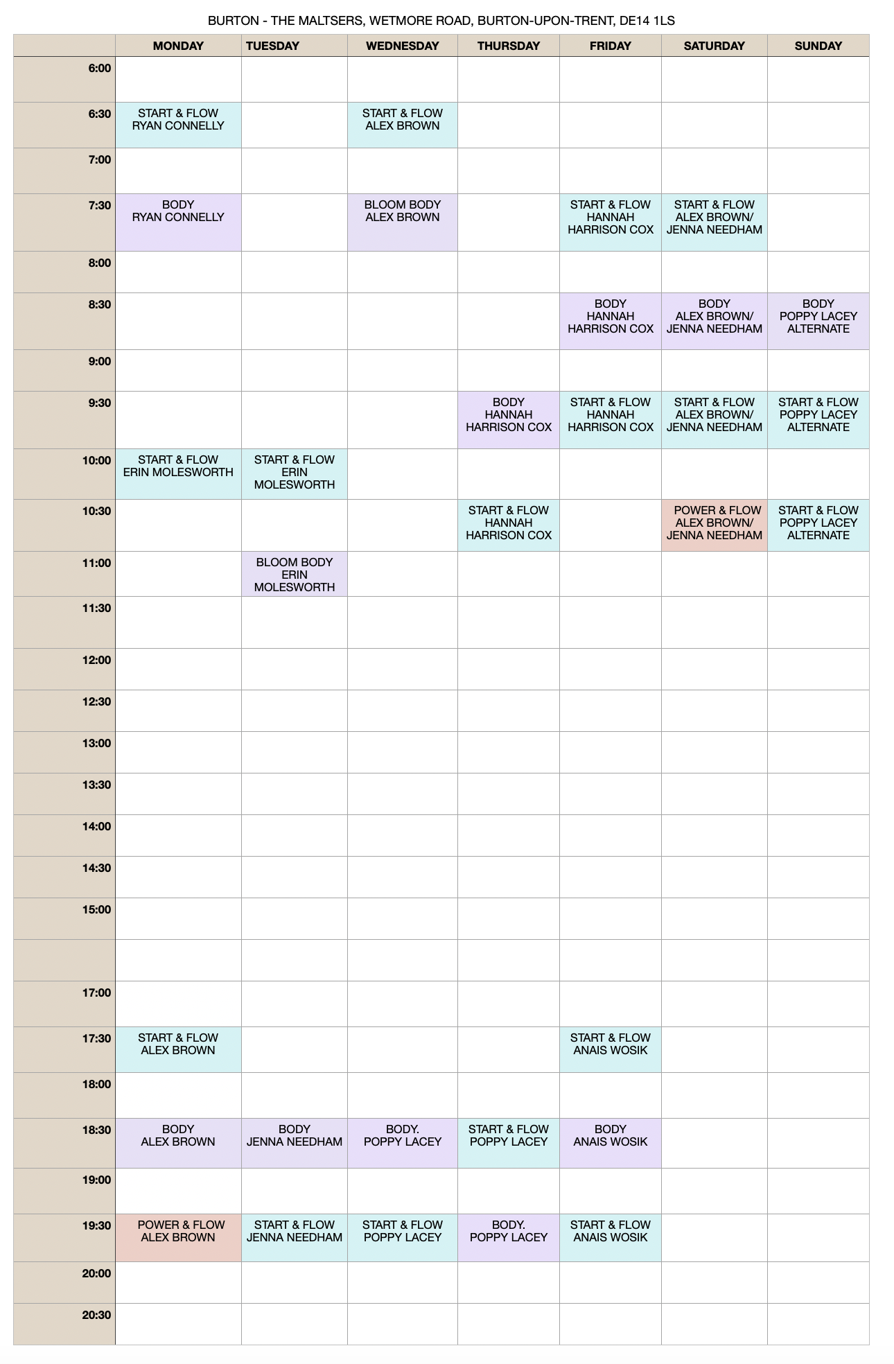 Timetables. Timetables for all studios are listed below. (classes can occasionally vary) , live bookings are available here