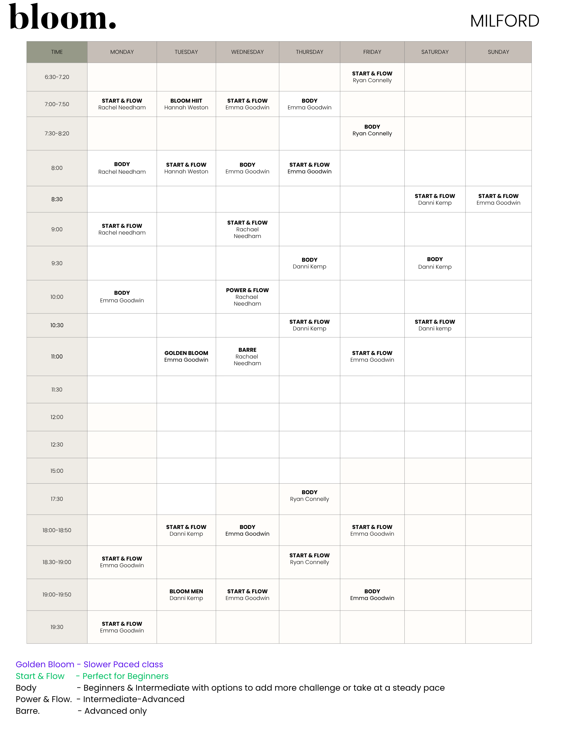 Timetables. Timetables for both studios are listed. (classes can occasionally vary) , live bookings are available here
